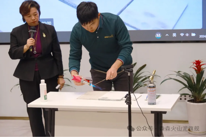 人民群众不仅要求要建好房子,更要通过绿色建材改善居住环境,提升生活质量。森森火山泥成长发展学院院长陈玥含就森森火山泥独特的功能与创新的合伙人合作方式进行了全面和细致地讲解,通过现场精彩的实验,直观展示了森森火山泥的长效净醛、防霉防潮、防火阻燃等功能,为居民居住环境的改善提供了更为环保的选择。森森火山泥依托公司自有的矿山资源与持续不断的产品研发能力,为装修装饰等行业提供一站式绿色建材解决方案,积极推动绿色建材行业的发展。