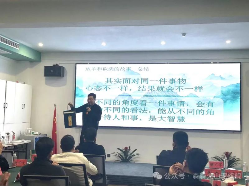 在培训会议上,森森火山泥董事长马学文先生通过讲述《放羊的故事》,深刻阐述了资源整合和交换的重要性。他鼓励各位合伙人要破除固化思维,积极学习新知识,不断提高自己的竞争力。同时,他也希望每一位合伙人在面对外界的种种质疑时,能矢志不渝坚守目标,坚定不移稳步前行,坚信成功必在眼前!